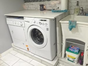 The laundry room needed to be remodeled to make it more convenient for them to fold their clothes and have more storage room. To make it easier on their backs, we raised their washer and dryer onto a platform. This meant no more bending down and no more back pain!