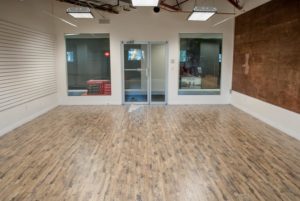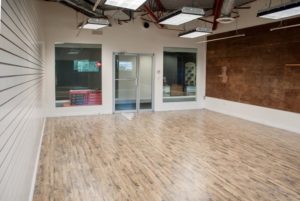 As you can see in the “before” photos, the space was an empty room. The floor needed to be redone, and the fluorescent lighting did not work for the feel that they were going for. Although the renovation was a fairly simple makeover, it is worth looking at the AFTER pictures.