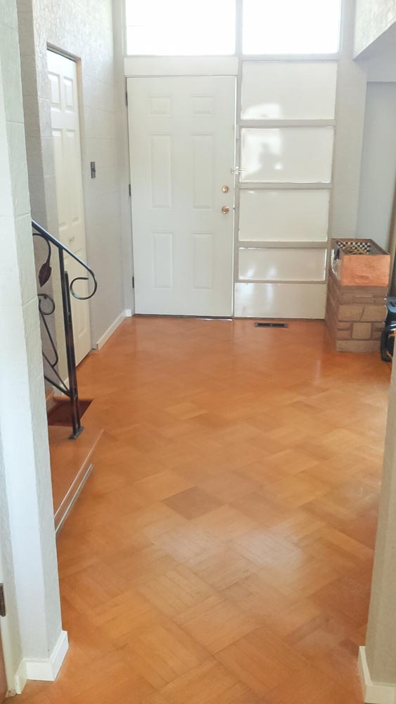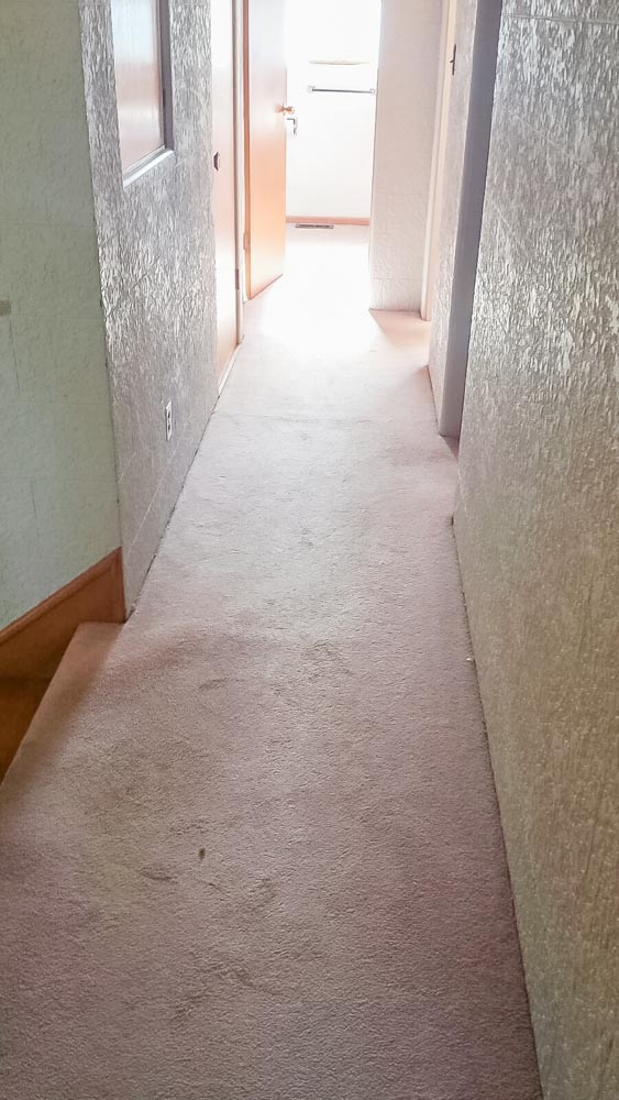 Removing the carpet was their main concern because they wanted to restore their existing natural solid hardwood flooring beneath the carpet. The carpet a large area of the home from the living room and foyer area downstairs to the hallway upstairs, including the staircase.